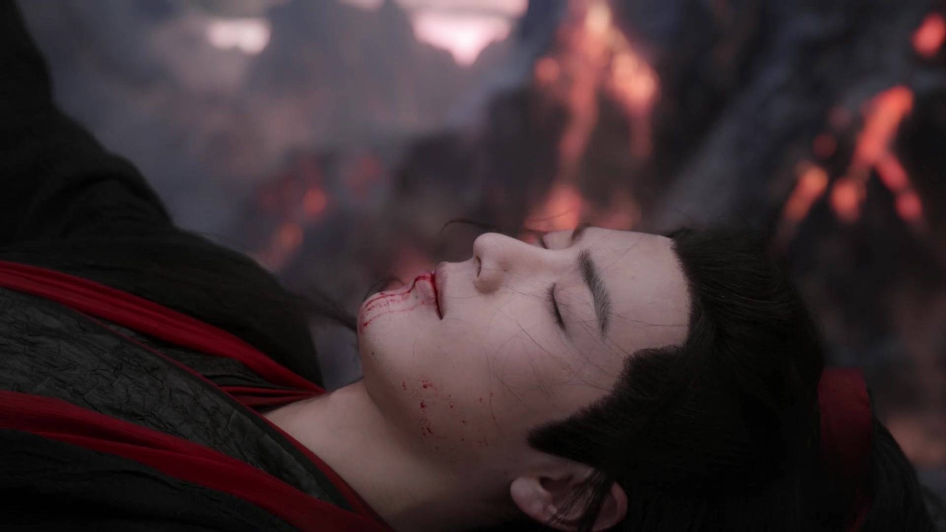 魏无羡缓缓闭上眼睛,身体向后坠去,突然感到有一只手死死拉住了他,他睁开双眼,看到了那张脸,双眸闪烁着晶莹的泪滴,写满了难过与不舍,仿佛在说“别走!”。魏无羡欣慰地笑了,原来还有你不肯放弃我。我想起来了,不夜天混战中,你一直在我身边,怕我失控劝我停下,怕我受伤替我挡剑,怕我危险让我吹笛,我隐约明白,其实你是愿意相信我的吗?