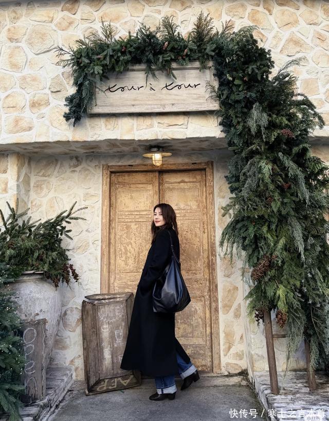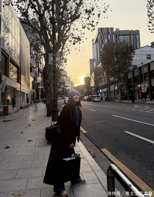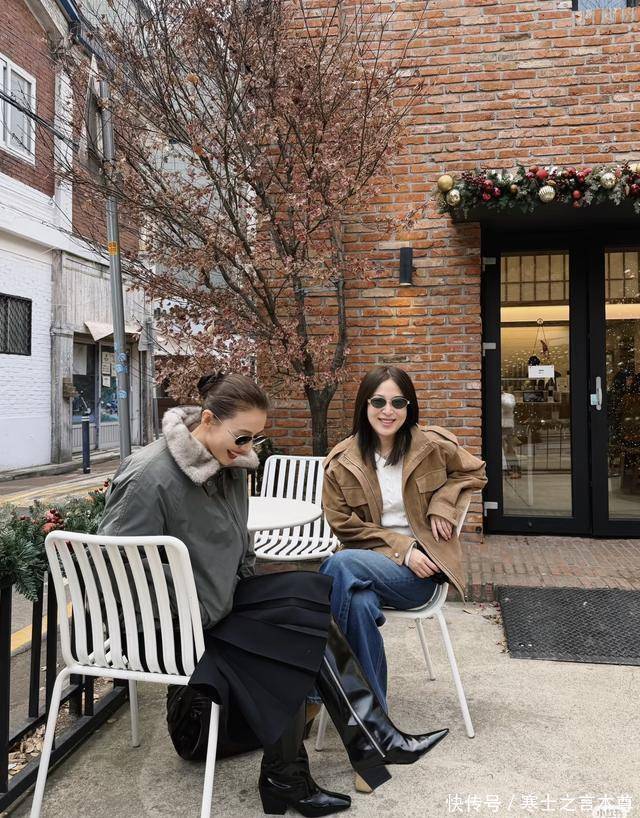 她这趟韩国之行的穿搭更是把“大气时髦又保暖”玩明白了!第一套造型是深灰色带毛领的工装外套,搭配黑色长裙和黑色长筒靴,毛领裹着脖颈防风又显温柔,长靴衬得腿型笔直,坐在街边白色椅子上和闺蜜闲聊时,随性又有范儿;