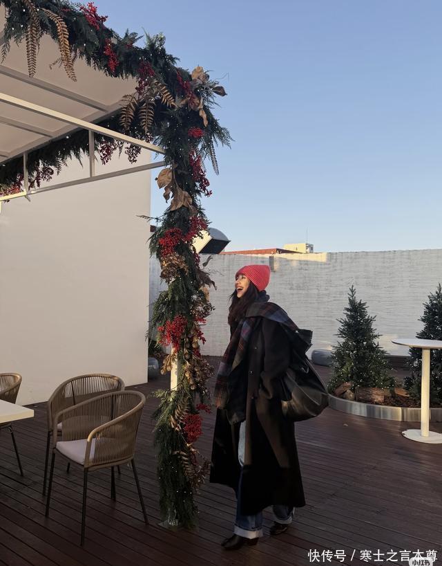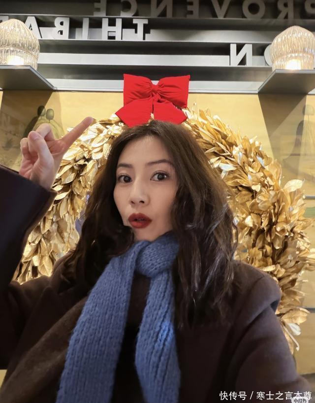 从她晒出的照片里能看到,她在韩国的街头巷尾一路走一路拍,一会儿对着红色邮筒甜笑自拍,一会儿靠在装饰着圣诞藤条的露台边仰头大笑,还对着镜头比出手指戳红色蝴蝶结的俏皮姿势,完全不像46岁的人,活脱脱就是个爱玩的小姑娘。