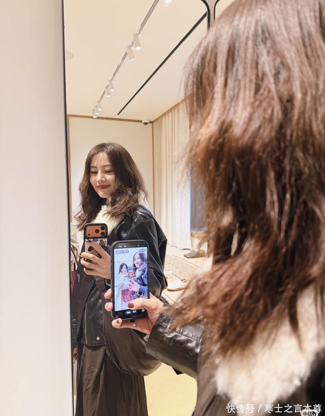 还有一身黑色皮夹克搭毛绒内搭的造型,对着镜子和闺蜜互拍时,又酷又甜,每一套都没有花里胡哨的装饰,却把基础款穿出了高级感,妥妥的“不作妖穿搭模板”。